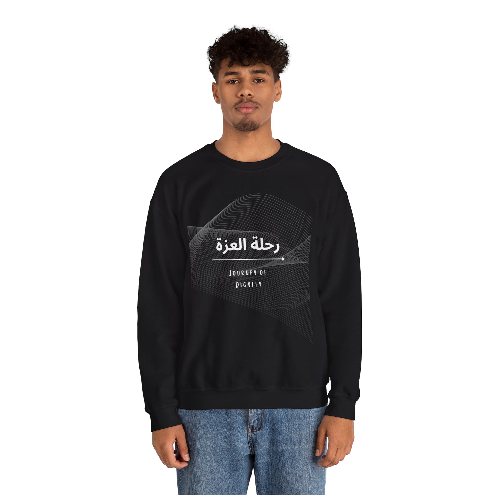 Journey of Dignity (رحلة العزة) Men’s Crew Neck Sweatshirt – Arabic Calligraphy Sweatshirt | Soft, Stylish & Meaningful Casual Wear