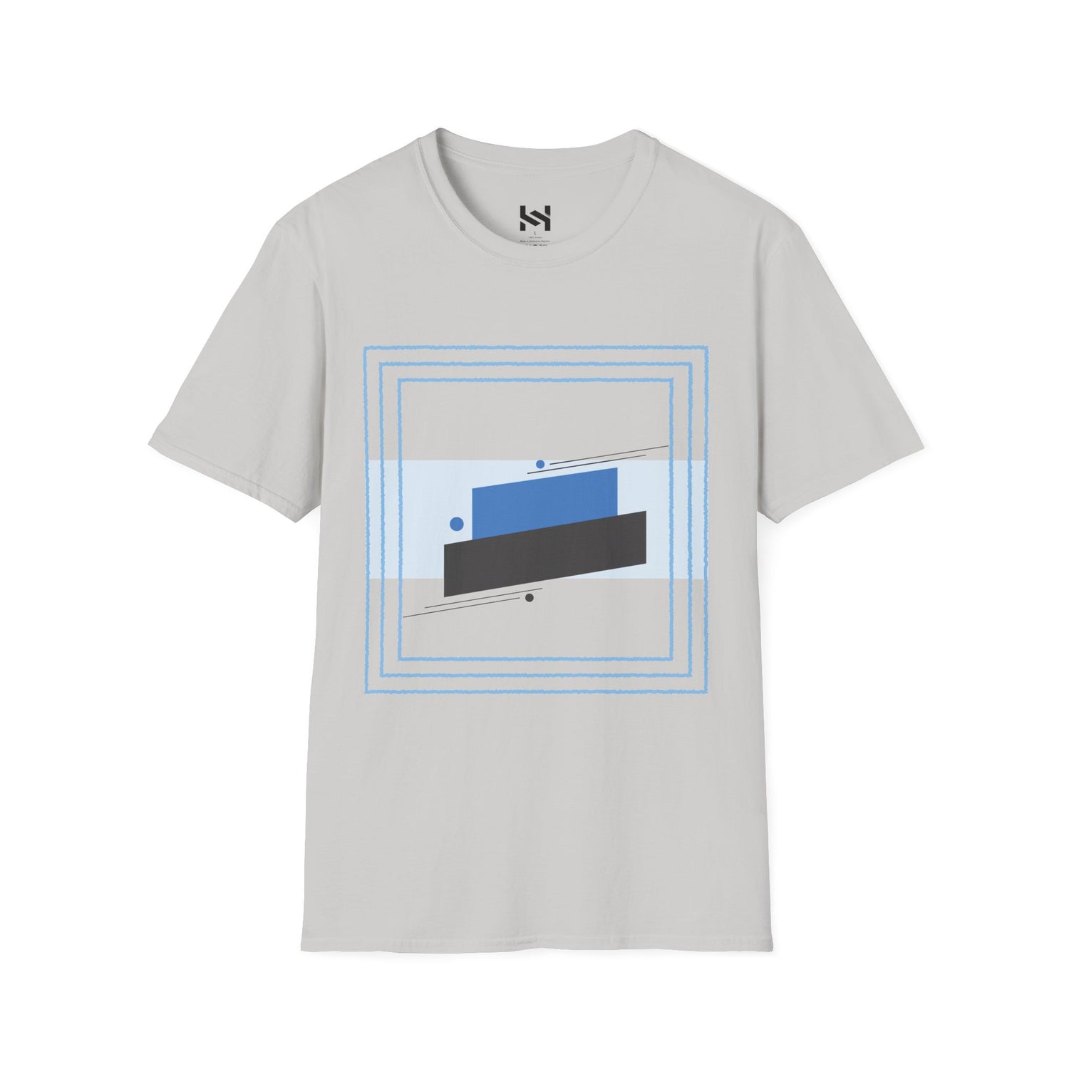 The clean, minimalist design features a bold light blue line and dual rectangle graphic, giving it a sleek, modern aesthetic ideal for both casual and streetwear looks. With a lightweight 4.5 oz/yd² fabric, it’s comfortable enough for warm days but still durable enough for daily wear.